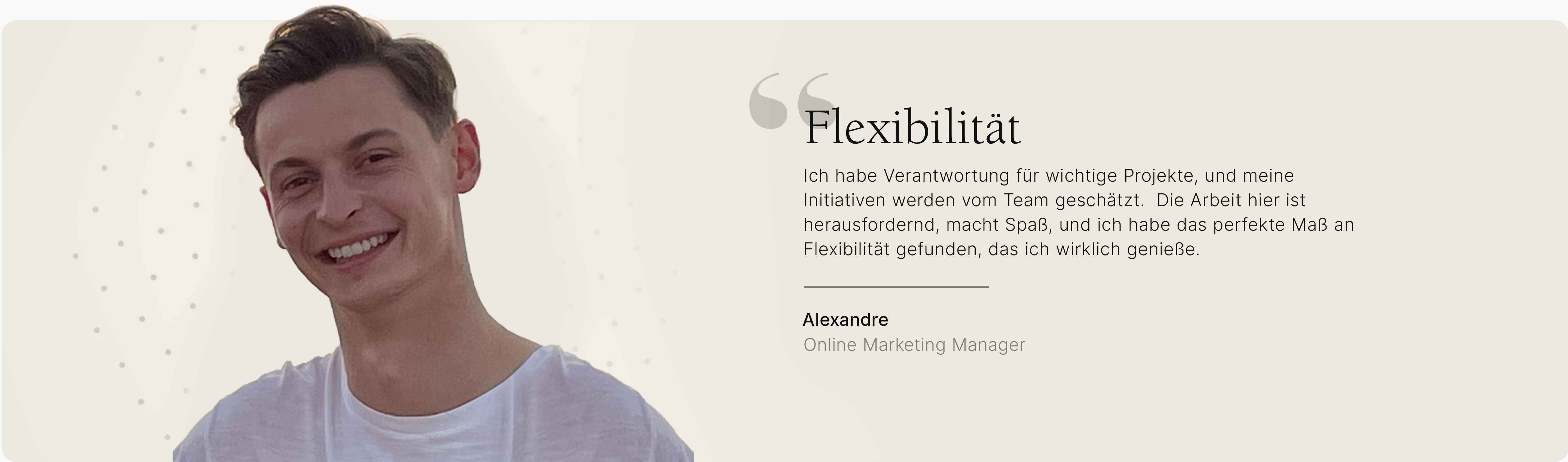Wir bieten Dir die Chance, Deine Fähigkeiten und Kreativität in Projekten einzubringen, die echte Wertschätzung und Begeisterung hervorrufen. Gestalte unsere Brand aktiv mit: Bei uns hast du die Möglichkeit, innovative Lösungen zu entwickeln und berührende Marketingkampagnen mitzugestalten.