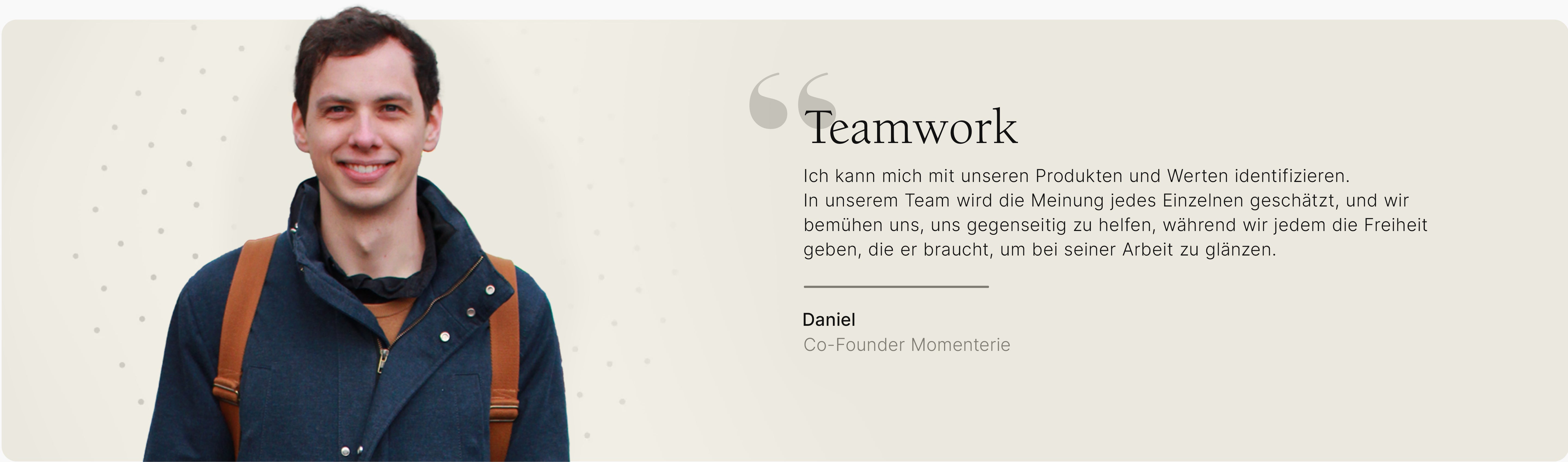 Werde Teil unseres dynamischen, kreativen Teams und nutze deine Talente, um noch mehr Menschen Glücksmomente zu bescheren. Unsere Teammitglieder bringen vielfältige Erfahrungen mit – darunter auch von renommierten Unternehmen wie Zalando, MaibornWolff und Apple.