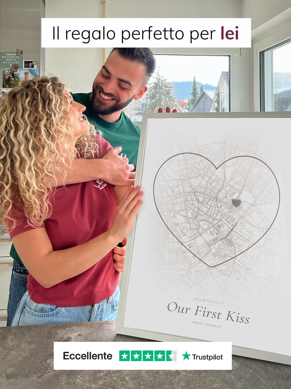 Un regalo speciale per lei: stupisci la tua dolce metà con un poster personalizzato che immortala un luogo speciale, una data e i vostri ricordi più belli insieme.
