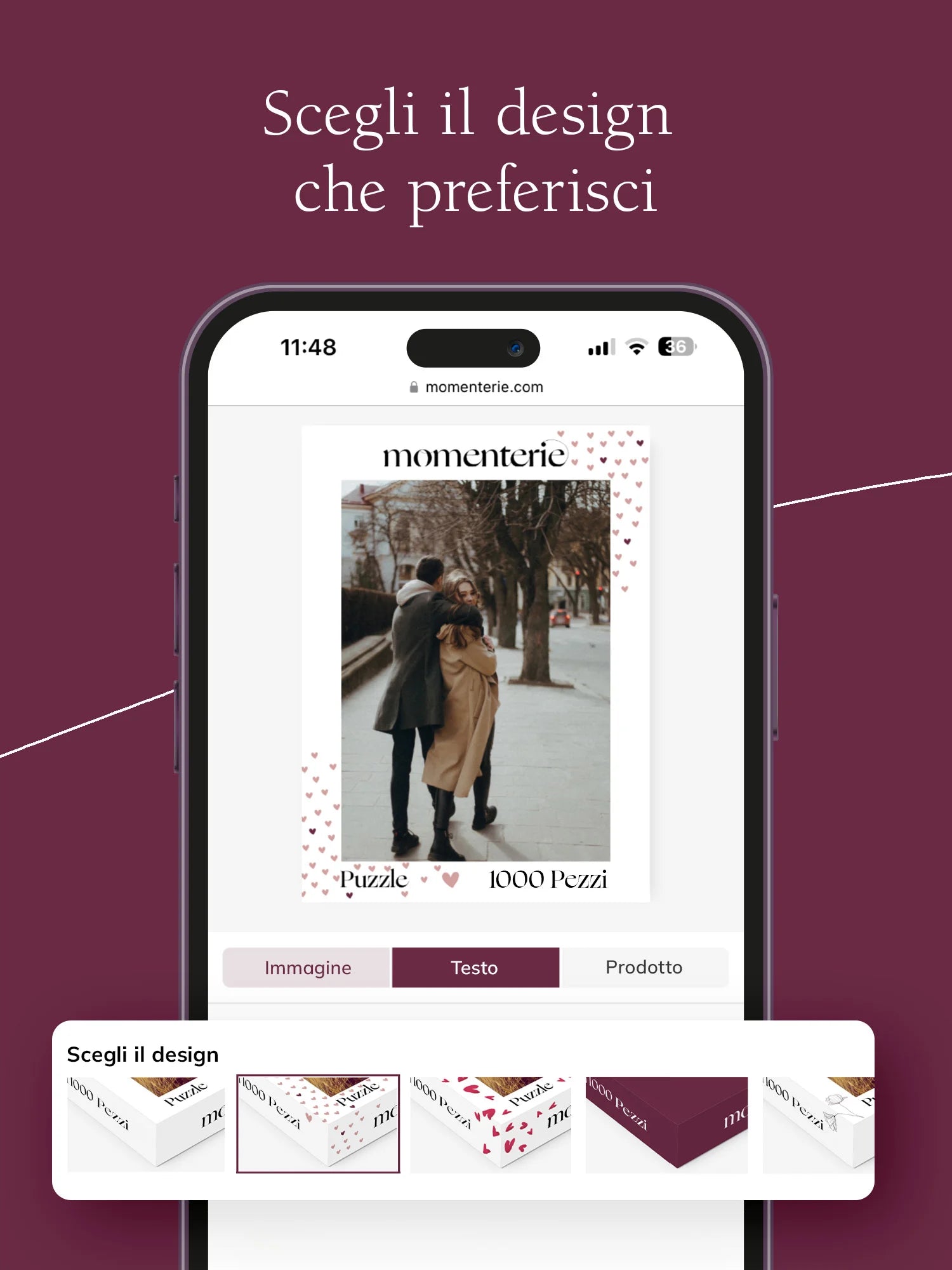 Scegli tra i diversi design disponibili e personalizza la scatola in base ai gusti della persona a cui regalerai il puzzle.