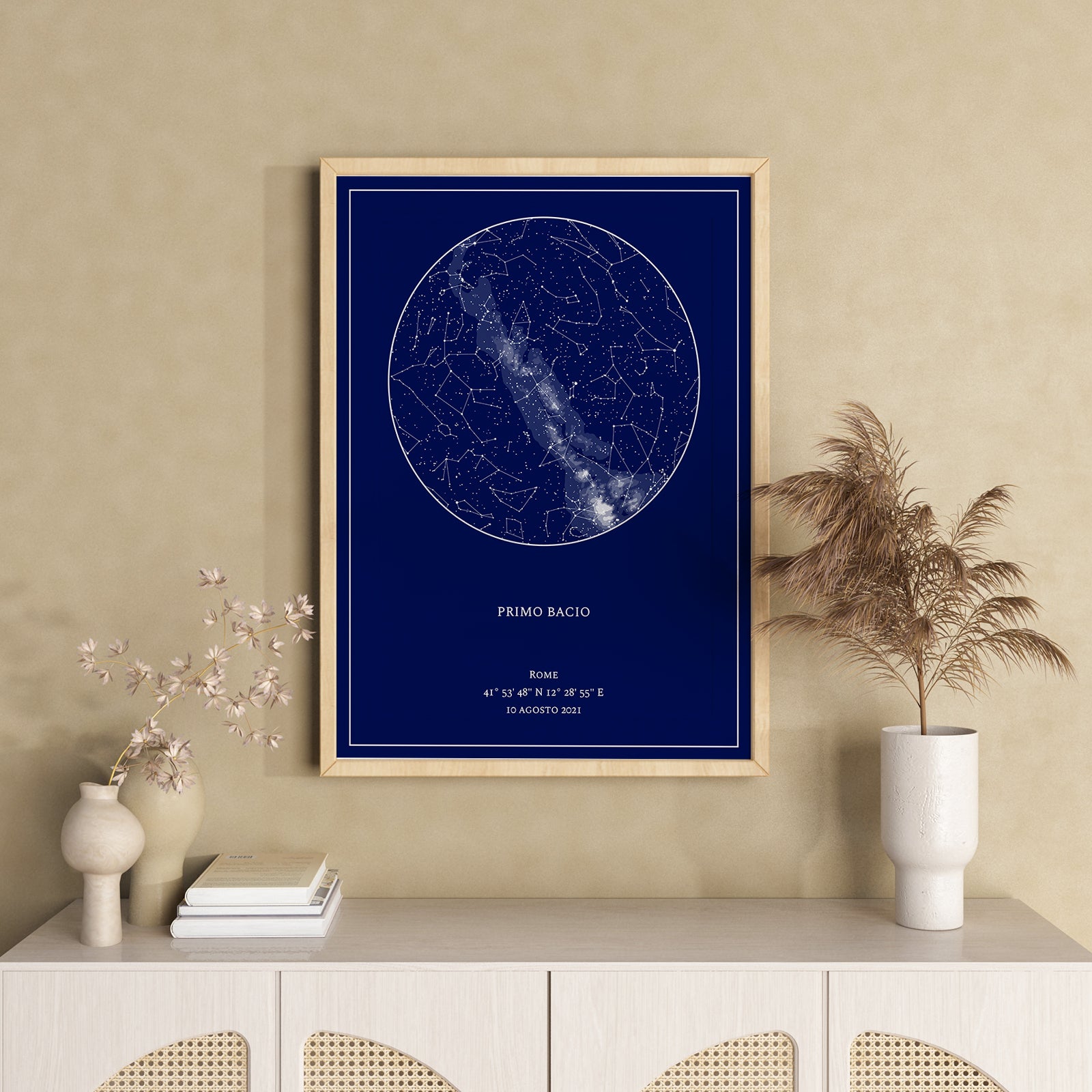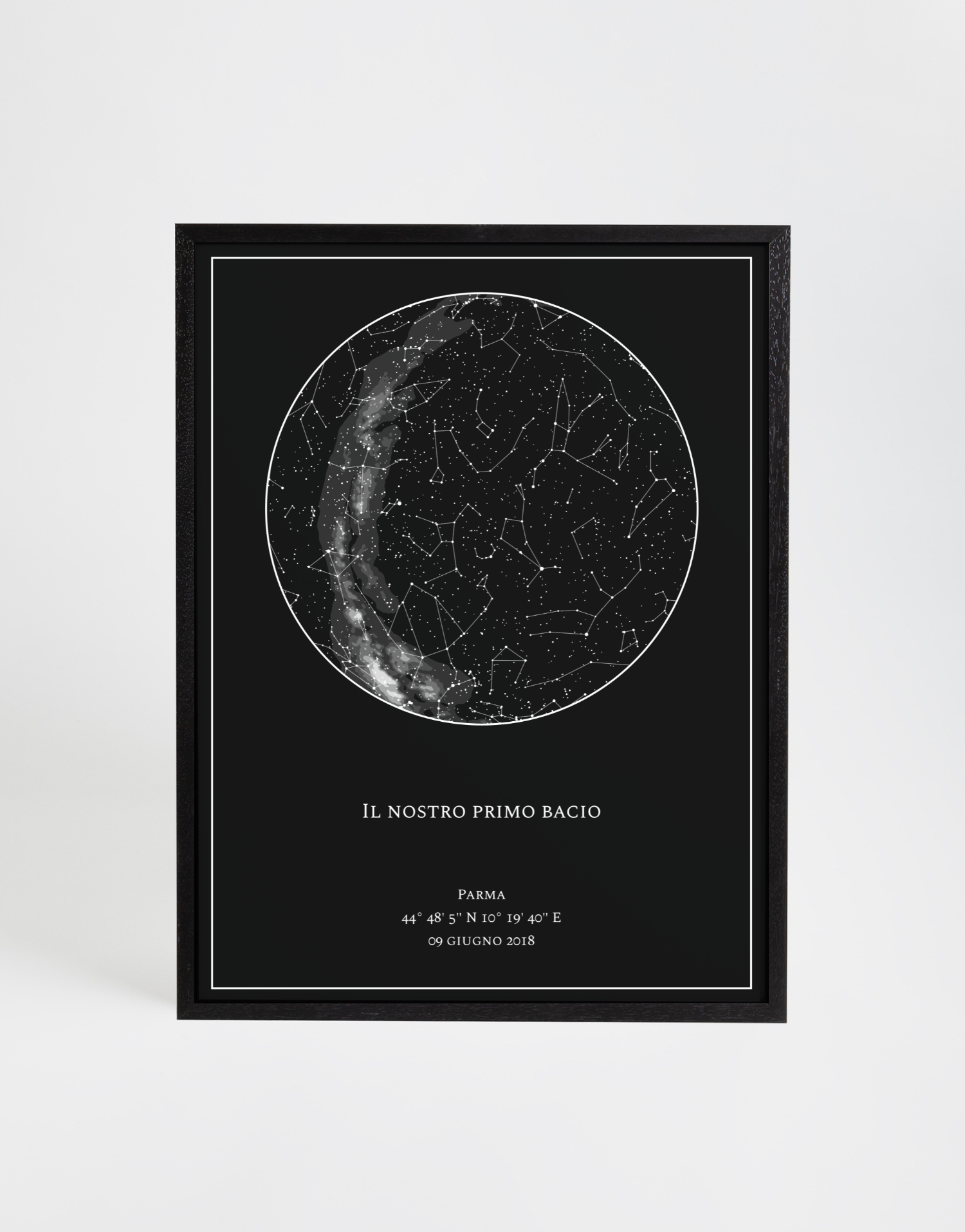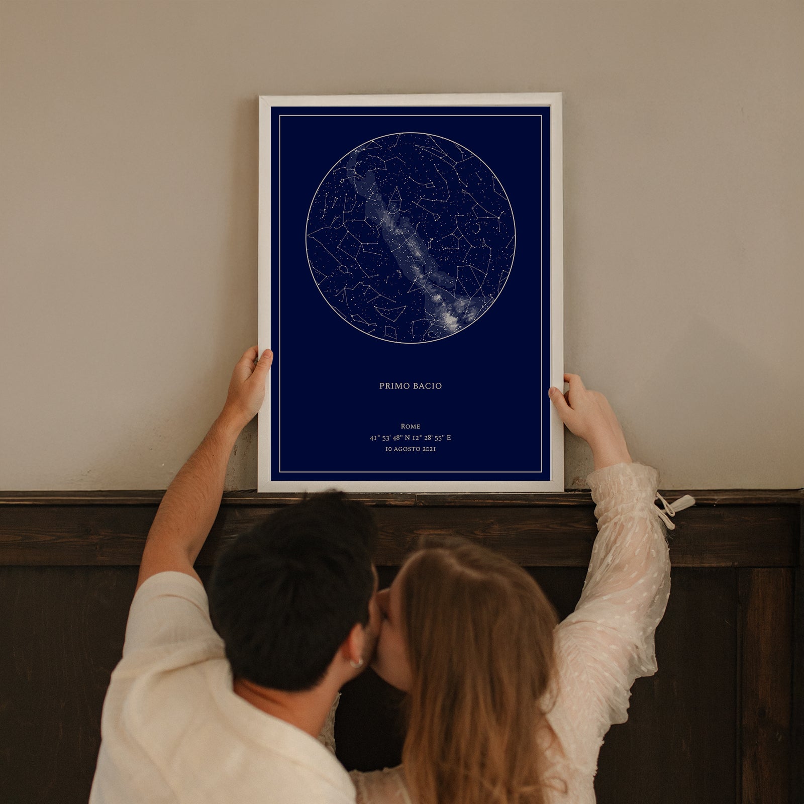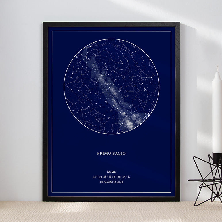 Rendi eterno il momento del vostro primo bacio con una mappa delle stelle personalizzata, un regalo per coppie davvero indimenticabile.