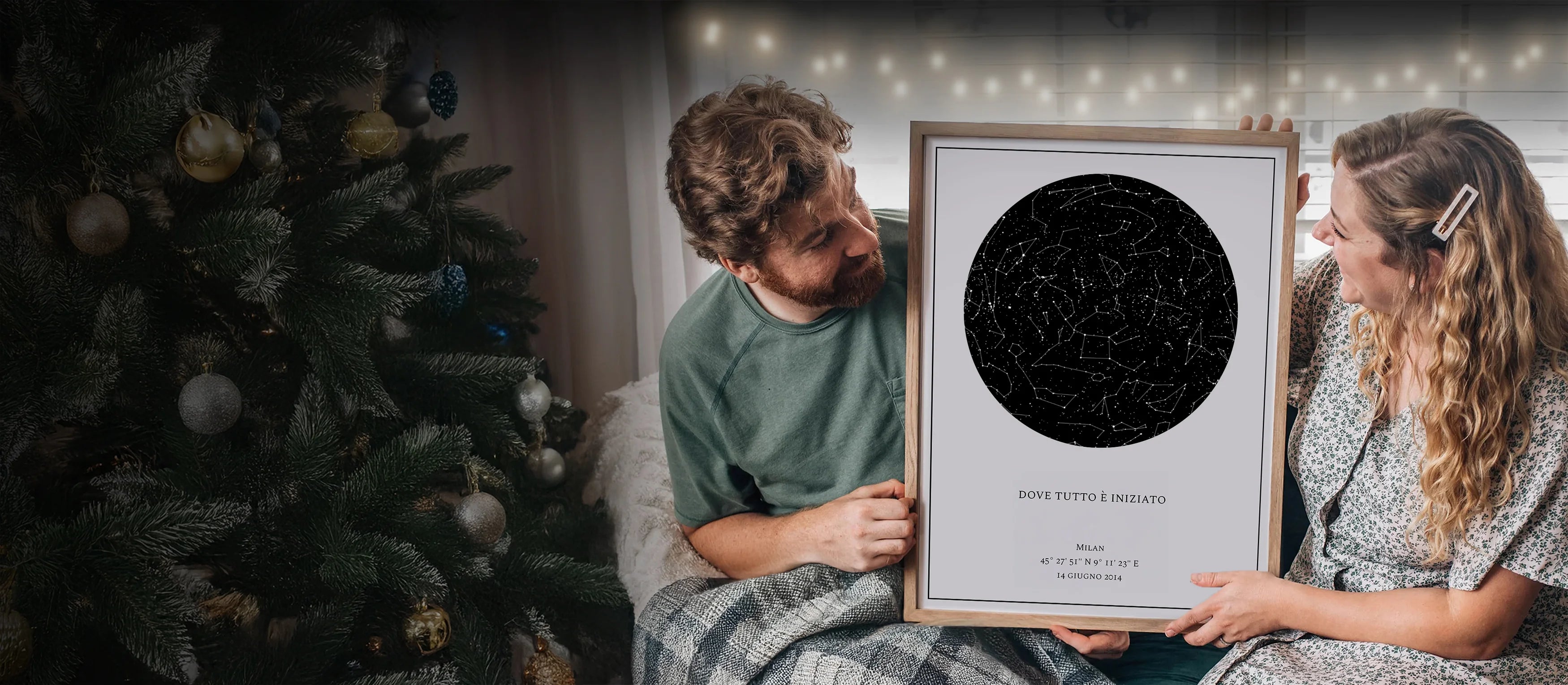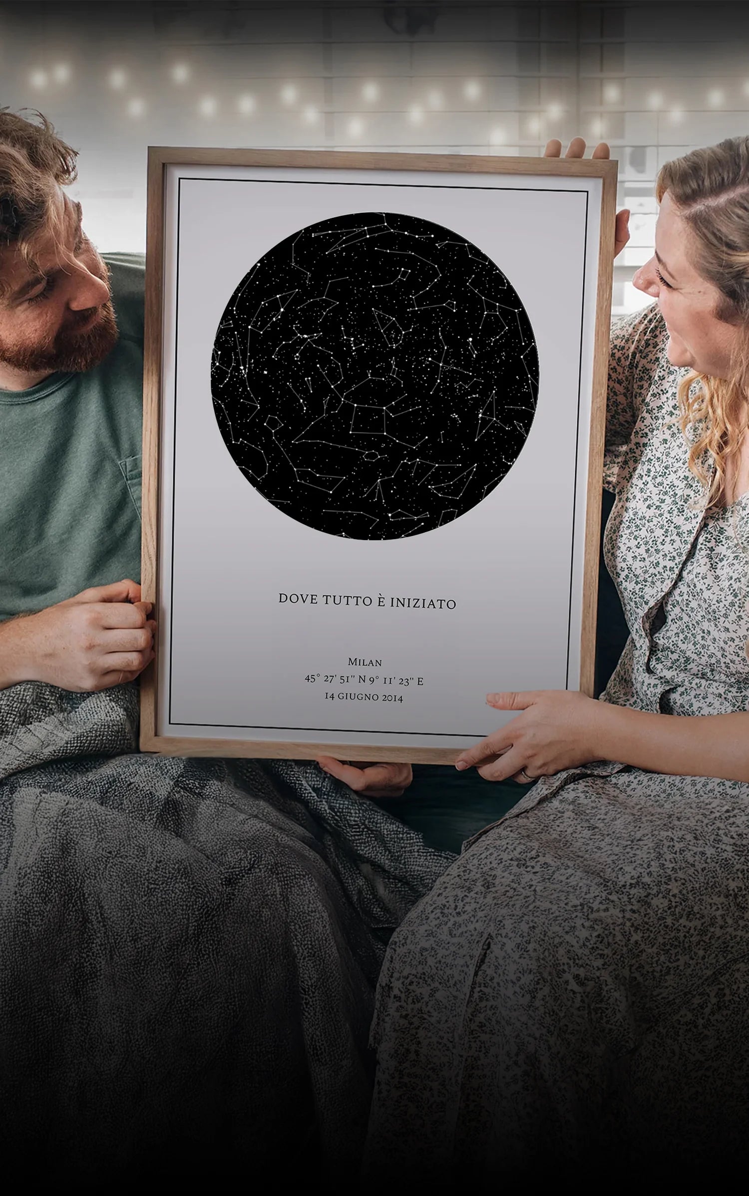 Scegli il luogo, la data e l'ora e cattura un momento unico. Personalizza la tua mappa delle stelle!