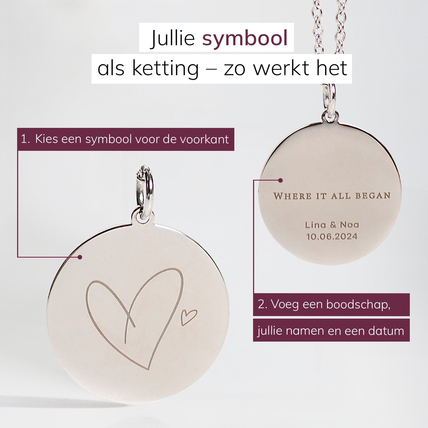 Gepersonaliseerde ketting – kies een symbool, voeg een boodschap, jullie namen & datum toe. Het perfecte cadeau voor een jubileum.