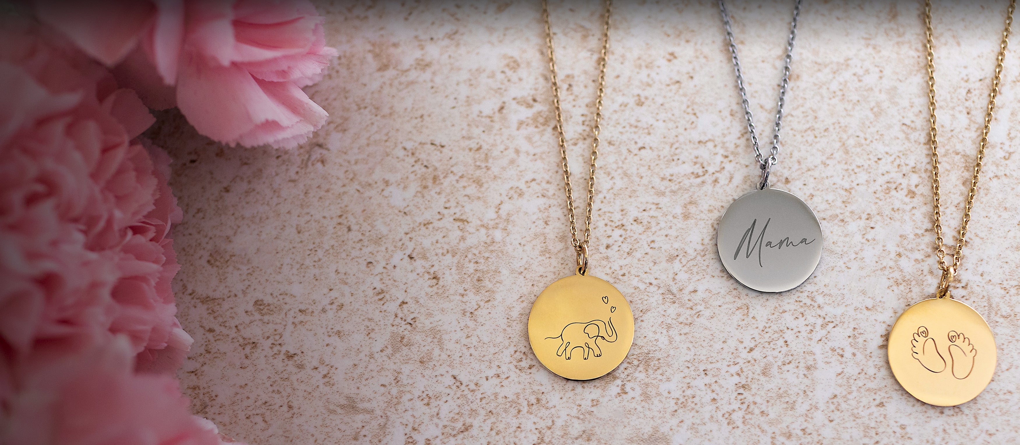 Cadeau voor een geboorte – personaliseer een ketting met een symbool en de naam van het kind en verras een nieuwe mama.