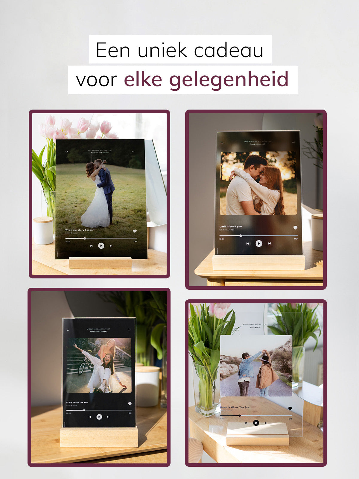 Of het nu voor een jubileum, verjaardag, Valentijnsdag of gewoon om 'ik hou van je' te zeggen is – de acrylglazen displaystandaard “Ons liedje” is meer dan alleen een cadeau. Het is een sentiment, een aandenken en een stijlvol symbool